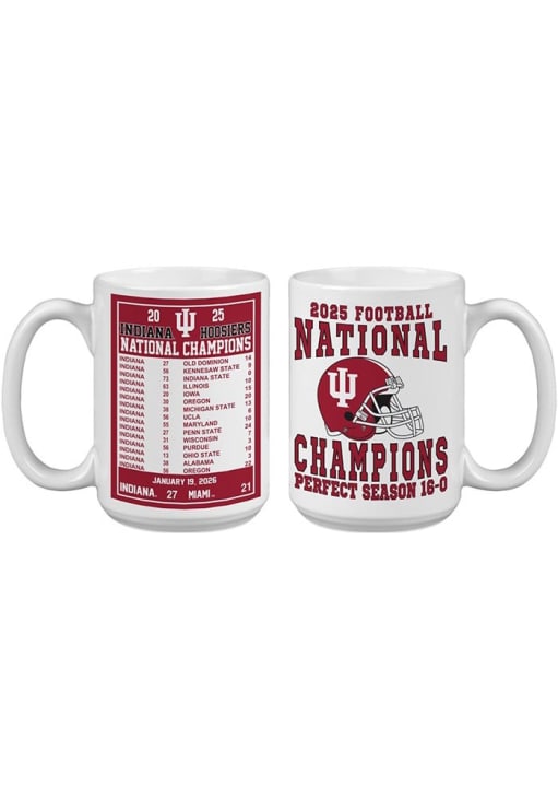 White Indiana Hoosiers 15oz Scoreboard 2025 Nat Champ Perfect Season Mug Ceramic Mug