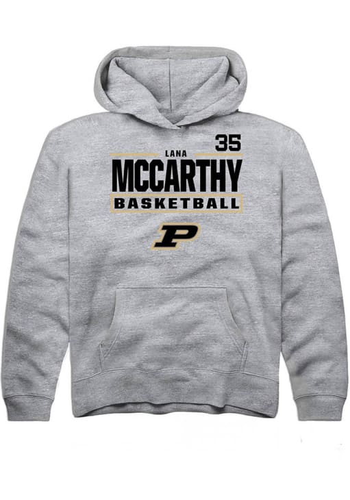 Lana McCarthy Rally Youth Grey Purdue Boilermakers NIL Stacked Box Long Sleeve Hooded Sweatshirt