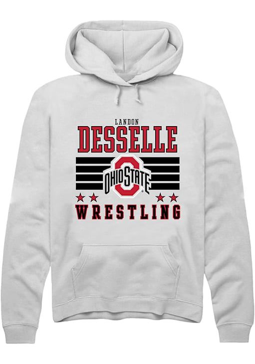 Landon Desselle Rally Mens White Ohio State Buckeyes NIL Striped Hooded Sweatshirt