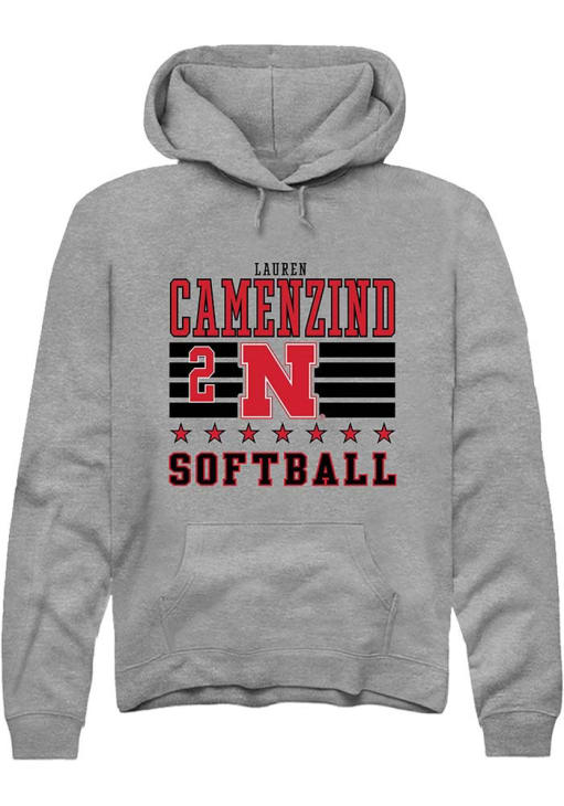 Lauren Camenzind Rally Mens Grey Nebraska Cornhuskers NIL Striped Hooded Sweatshirt