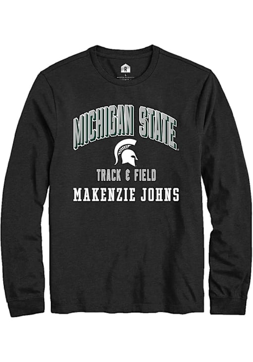 Makenzie Johns Mens Black Michigan State Spartans NIL Arch Logo Long Sleeve Player T Shirt