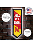 Product Details Product Details 9 x 23 x 0.25Full edge lightingFully backlighted faceplateHD digitally printed face plateOfficial team logo and colors12V/3-amp plug-in power supply Officially Licensed This Maryland Terrapins 9x23 Banner Shaped Light Up Sign is great for decorating your home Terrapins team spirit. Take your team spirit to the next level with this Sign, which features a official team logo with backlighted faceplate. Go Terps!