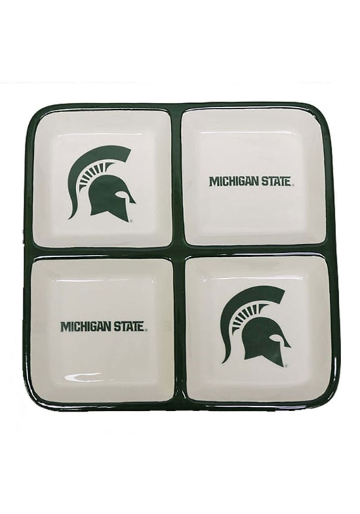 Product Details Product Details Tray has 4 square sectionEach section has a printed wordmark or team logoOutlined in team colorGreat tailgating item or house warming giftEssential for every great party!Ceramic Officially Licensed Add these Spartans Serving Tray to your next tailgate party. Celebrate your favorite team while your enjoy your favorite gameday snacks on these Michigan State Spartans Serving Tray.