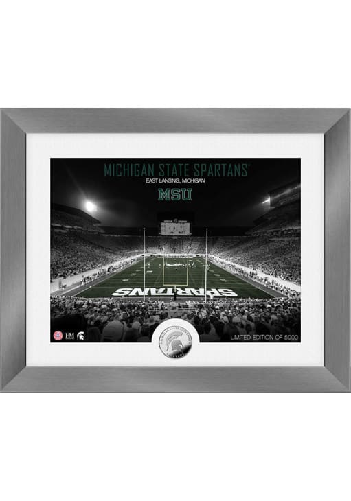 A way to show your team spirit is with this Michigan State Spartans Art Deco Stadium Coin Photo Mint Plaque. This Plaque features a 13”x16” limited edition collectible frame with your teams home field combined with a minted team coin.