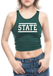 Elevate your tailgating style with this Michigan State Spartans Womens Tank Top. Stay fashionable and comfortable in the refreshing Green Athletic Sleeveless Shirt. Discover the enticing details of this MSU Tank Top, showcasing a center front screen print team name that's sure to impress.