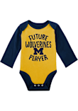 Your little Wolverines fan will look adorable in this Baby Blue Michigan Wolverines Play Time 2pk LS One Piece! This Michigan Wolverines Romper features a screen print team graphic.