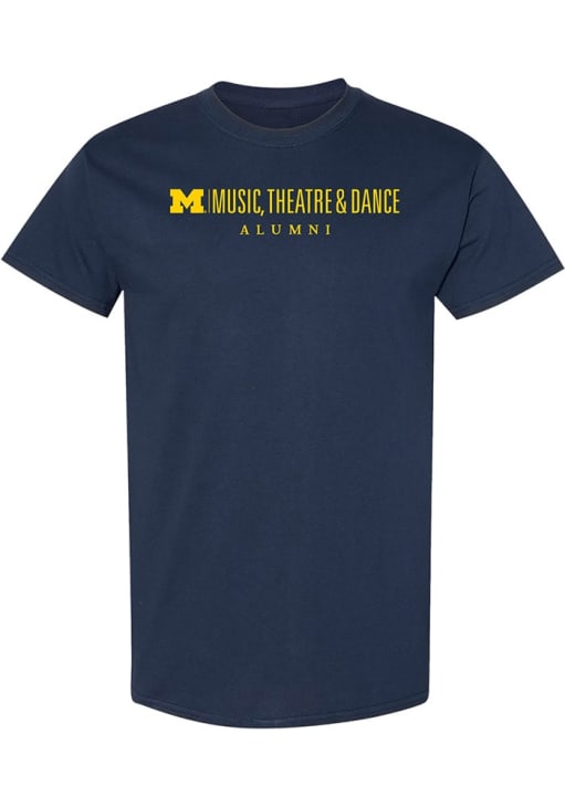 Display your team spirit with this remarkable Michigan Wolverines Navy Blue School of Music, Theatre & Dance Alumni Short Sleeve T Shirt! The Michigan Short Sleeve Tee showcases a screen print team graphic across chest that truly sets it apart. Stand out from the crowd and proudly declare your allegiance to the Wolverines with this exceptional Navy Blue Michigan T Shirt. Go Michigan!