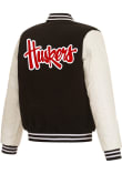 - Soft-to-the-touch polyester fleece body with a faux leather sleeves and nylon shell reverse side