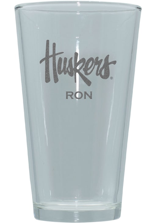 Enjoy a cold one and support your favorite team with this Nebraska Cornhuskers Personalized Laser Etched 17oz Pint Glass. This Pint Glass features a laser etched personalization of your choice. Go Huskers!