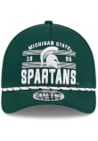 Product Details Product Details New Era March Madness 9FORTY Modern CrownFront embroidered team logoRope across visorSide embroidered team logoSide embroidered New Era logoBack snap plastic closurePolyesterCurved BillLow CrownUnstructuredWipe clean with cloth or cleaning kitImported Officially Licensed This Green Spartans Adjustable Hat features a front embroidered team logo and rope on visor.