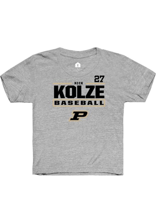 Nick Kolze Rally Youth Grey Purdue Boilermakers NIL Stacked Box Short Sleeve T-Shirt