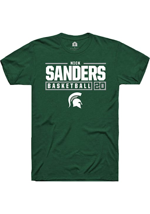Nick Sanders Green Michigan State Spartans NIL Stacked Box Short Sleeve T Shirt