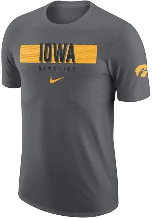 Display your team spirit with this remarkable Iowa Hawkeyes Nike Grey Gametime Short Sleeve T Shirt! The Hawkeyes Short Sleeve Tee showcases a screenprint of team graphic and Nike swoosh on front chest with team logo on left sleeve that truly sets it apart. Stand out from the crowd and proudly declare your allegiance to the Hawkeyes with this exceptional Grey Hawkeyes T Shirt. Go Hawkeyes!