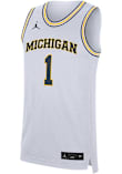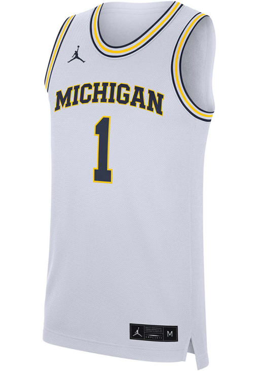 Stand out and showcase your unwavering Michigan pride with confidence in this striking Michigan Wolverines Mens White Replica Jersey! Make a statement on gameday with this eye-catching Michigan Wolverines Basketball Jersey, which features a team name and number on front chest with Jordan logo on left chest.