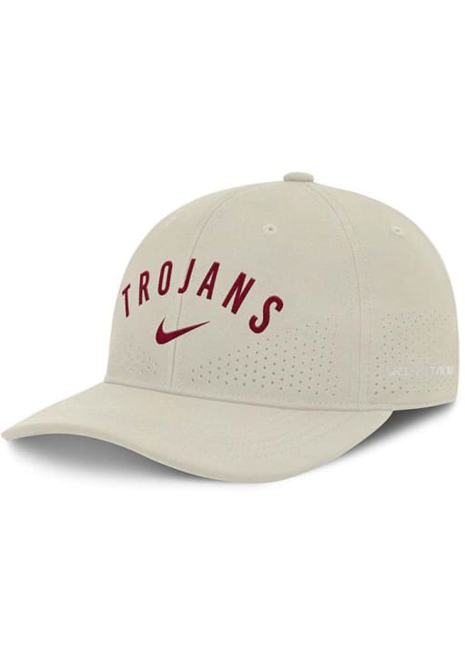 Product Details Product Details Nike Rise Performance Structured AdjustableFront embroidered team wordmarkNike swoosh on front of crownPerforation on front and back panelsBack plastic snap closurePOLYESTERCurved BillLow CrownStructuredWipe clean with cloth or cleaning kitImported Officially Licensed This Natural Trojans Adjustable Hat features a front embroidered team logo.