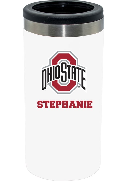 White Ohio State Buckeyes Personalized Slim Can Stainless Steel Coolie