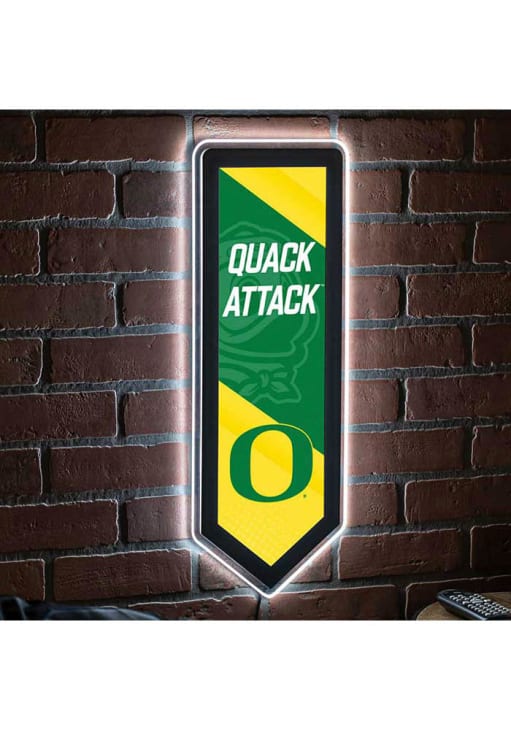 Product Details Product Details 9 x 23 x 0.25Full edge lightingFully backlighted faceplateHD digitally printed face plateOfficial team logo and colors12V/3-amp plug-in power supply Officially Licensed This Oregon Ducks 9x23 Banner Shaped Light Up Sign is great for decorating your home Ducks team spirit. Take your team spirit to the next level with this Sign, which features a official team logo with backlighted faceplate. Go Ducks!