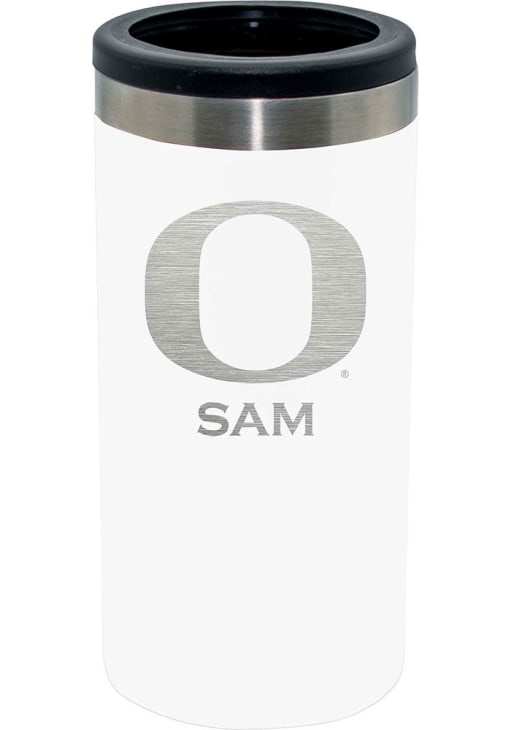 White Oregon Ducks Personalized Laser Etched 12oz Slim Can Stainless Steel Coolie