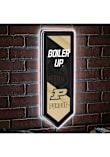 This Purdue Boilermakers 9x23 Banner Shaped Light Up Sign is great for decorating your home Boilermakers team spirit. Take your team spirit to the next level with this Sign, which features a official team logo with backlighted faceplate. Hail Purdue!