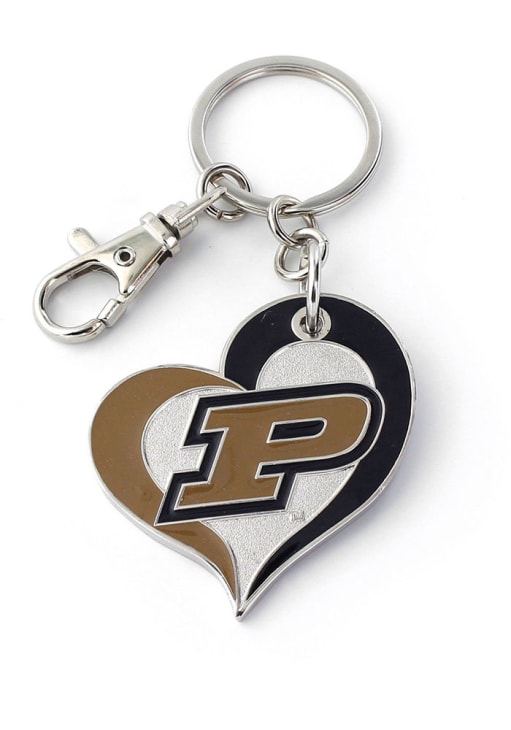 Keep your keys safe and show a little Boilermakers fandom everywhere you go with this Purdue Boilermakers Swirl Heart Keychain. This Keychain features a Team color and team logo. Hail Purdue!