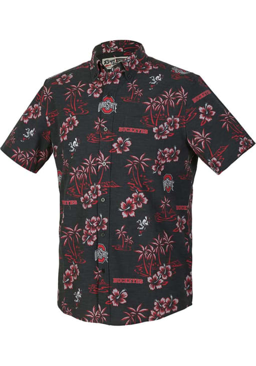 Mens Ohio State Buckeyes Black Reyn Spooner Kekai Button 24 Short Sleeve Dress Shirt