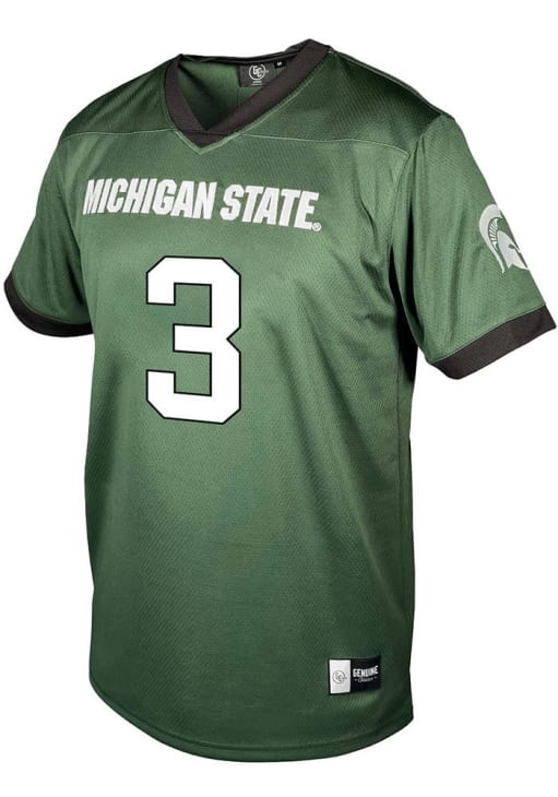 Get in the game with this ultimate Michigan State Spartans Mens Green NIL Football Jersey. Wear this Jersey to the upcoming tailgate or game for your Spartans. With a embroidered logo, player name and number, this Mens Football Jersey is a great way to show your team spirit in style.