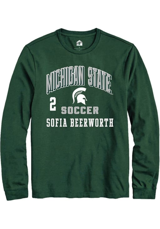 Embrace the spirit of your favorite player in this Michigan State Spartans Green NIL Arch Logo Sofia Beerworth Long Sleeve Player Tee! This Player T Shirt features a NIL graphic, so everyone will know you cheer for MSU, Sofia Beerworth! This is the perfect Spartans Player Tee for game days. Go Spartans!