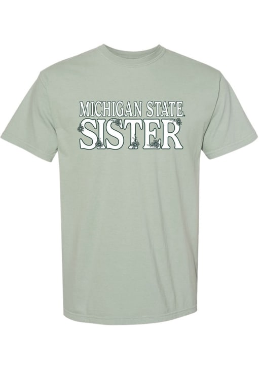 Display your team spirit with this remarkable Michigan State Spartans Green Floral Sister Short Sleeve T-Shirt! The MSU Short Sleeve Tee showcases a screen print team graphic that truly sets it apart. Stand out from the crowd and proudly declare your allegiance to the Spartans with this exceptional Green MSU T-Shirt. Go Spartans!