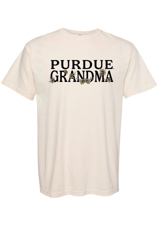 Display your team spirit with this remarkable Purdue Boilermakers Ivory Floral Grandma Short Sleeve T-Shirt! The Purdue Short Sleeve Tee showcases a screen print team "grandma" graphic that truly sets it apart. Stand out from the crowd and proudly declare your allegiance to the Boilermakers with this exceptional Ivory Purdue T-Shirt. Hail Purdue!