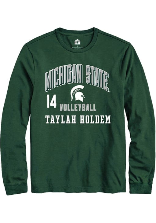 Taylah Holdem Mens Green Michigan State Spartans NIL Arch Logo Long Sleeve Player T Shirt