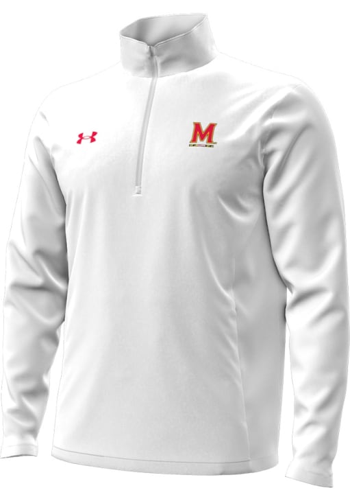 Embrace the warmth and showcase your Terrapins pride with our Maryland Terrapins Long Sleeve Qtr Zip Pullover. This Mens White Sideline Pro Hybrid Long Sleeve Pullover offers a flat ink heatseal team logo left chest with under armour heatseal on right chest for the perfect combination of comfort and style. Elevate your everyday look with this must-have Maryland Terrapins Long Sleeve Qtr Zip Pullover.