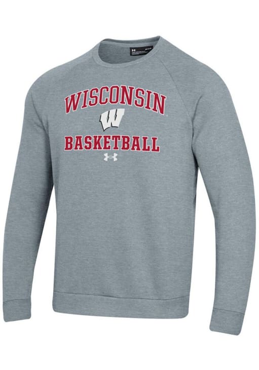 Mens Wisconsin Badgers Grey Under Armour Basketball Rival Crew Sweatshirt