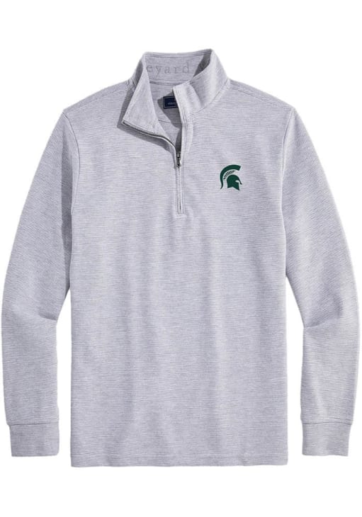 Embrace the warmth and showcase your Spartans pride with our Michigan State Spartans Long Sleeve Qtr Zip Pullover. This Mens Graphite Saltwater Long Sleeve Pullover offers a team logo on left chest for the perfect combination of comfort and style. Elevate your everyday look with this must-have Michigan State Spartans Long Sleeve Qtr Zip Pullover.
