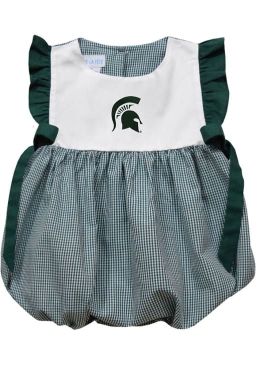 Size Chart for Baby Girls Michigan State Spartans Green Vive La Fete Gingham Bubble Short Sleeve Dress