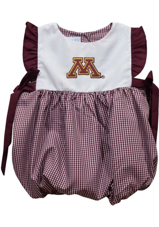 Baby Girls Minnesota Golden Gophers Maroon Vive La Fete Gingham Bubble Short Sleeve Dress