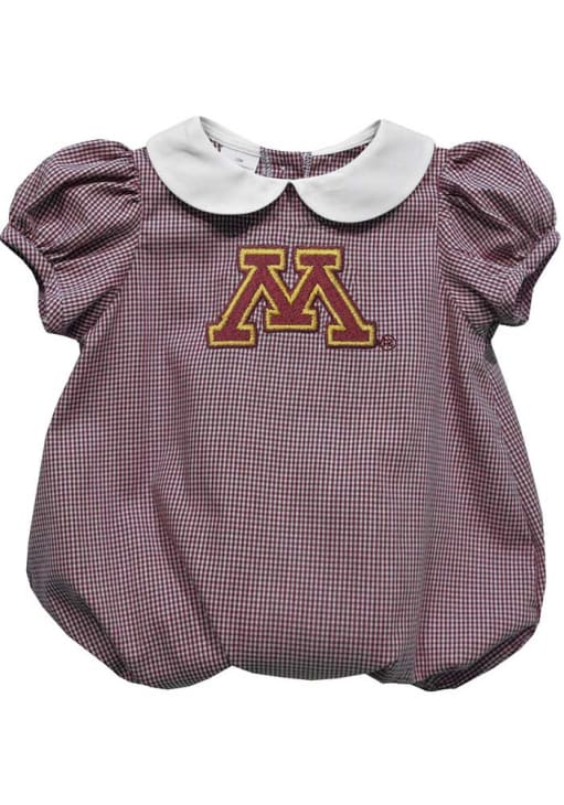 Your little Golden Gophers fan will look adorable in this Baby Maroon Minnesota Golden Gophers Gingham Collar One Piece! This Minnesota Golden Gophers Romper features a embroidered team logo on gingham print.