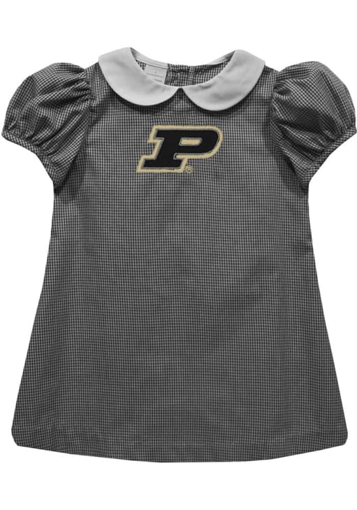 Toddler Girls Purdue Boilermakers Black Vive La Fete Gingham Collar Short Sleeve Dress