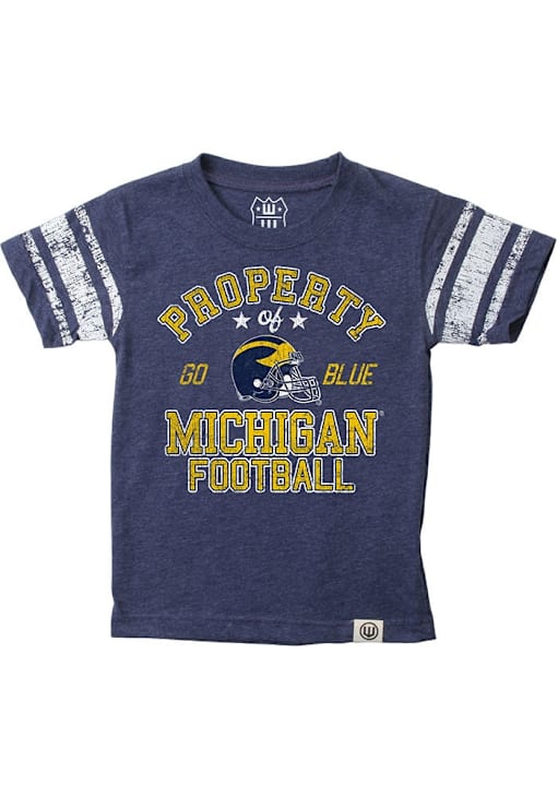 Size Chart for Toddler Michigan Wolverines Blue Wes and Willy Football Sleeve Stripe Short Sleeve T-Shirt
