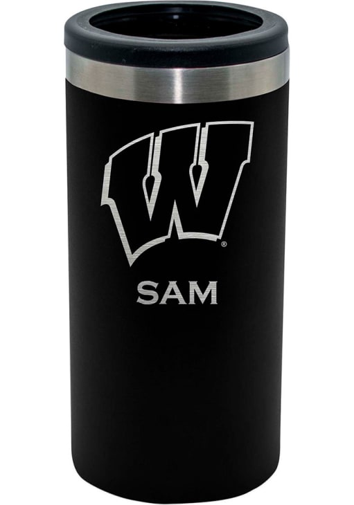 White Wisconsin Badgers Personalized Laser Etched 12oz Slim Can Stainless Steel Coolie