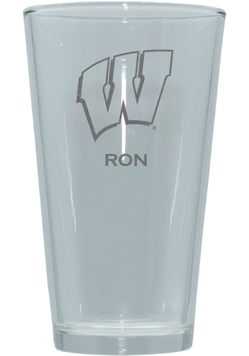 Enjoy a cold one and support your favorite team with this Wisconsin Badgers Personalized Laser Etched 17oz Pint Glass. This Pint Glass features a laser etched personalization of your choice. Go Badgers!